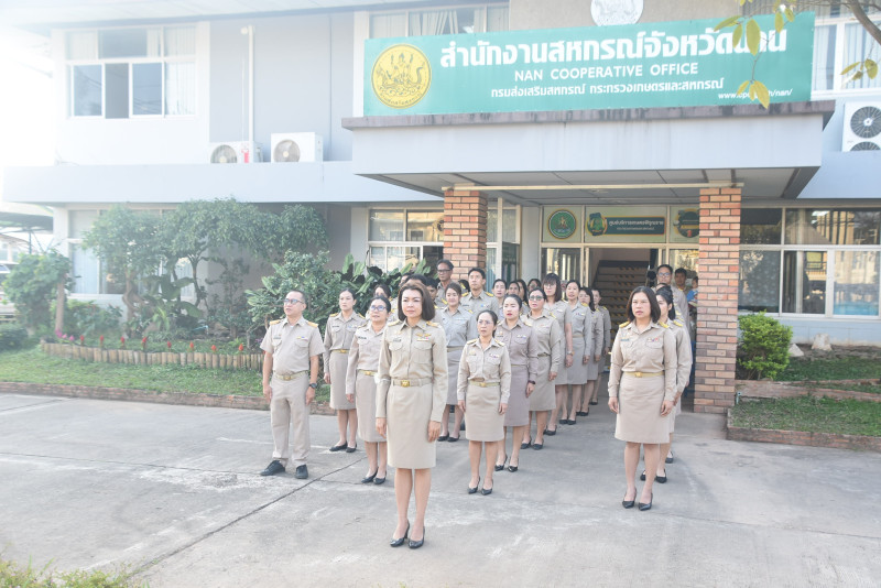 วันที่ 2 กุมภาพันธ์ 2569 เวลา 08.00 น. สำนักงานสหกรณ์จังหวัดน่าน จัดกิจกรรมเคารพธงชาติ สวดมนต์ไหว้พระ และร้องเพลงสรรเสริญพระบารมี เพื่อเป็นการสร้างจิตสำนึกต่อสถาบันชาติ ศาสนา พระมหากษัตริย์ และการเป็นข้าราชการที่ดี อีกทั้งเป็นการเตรียมความพร้อมในการปฏิบัติราชการ โดยมีนางสาวศิวาพร วังสมบัติ สหกรณ์จังหวัดน่าน พร้อมด้วยบุคลากรสำนักงานสหกรณ์จังหวัดน่าน เข้าร่วมกิจกรรมฯ ณ บริเวณหน้าอาคารสำนักงานสหกรณ์จังหวัดน่าน อำเภอภูเพียง จังหวัดน่าน