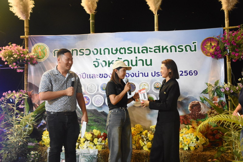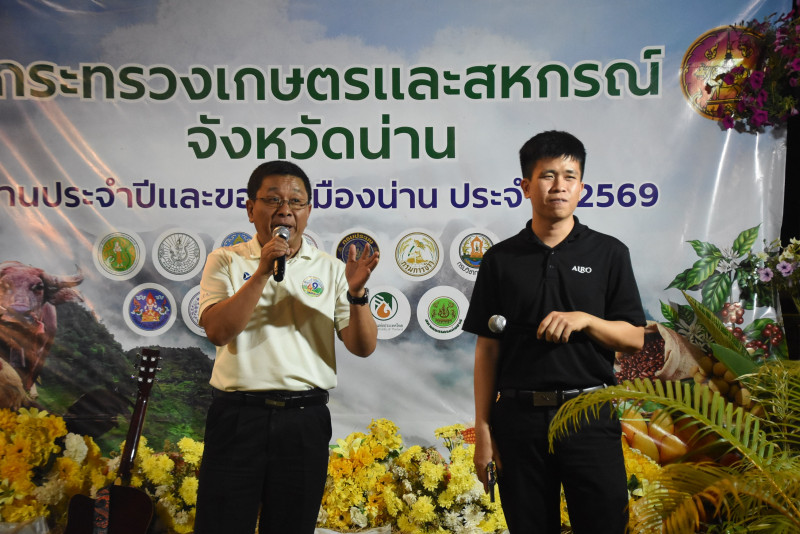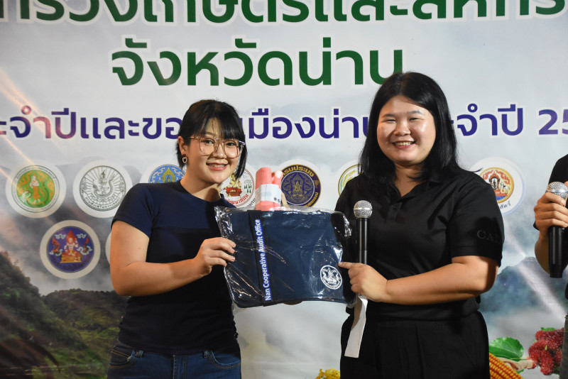 วันที่ 18 กุมภาพันธ์ 2569 สำนักงานสหกรณ์จังหวัดน่าน ร่วมกับสำนักงานตรวจบัญชีสหกรณ์จังหวัดน่าน สำนักงานการปฏิรูปที่ดินจังหวัดน่าน จัดกิจกรรมให้ความรู้ทางวิชาการ ตอบคำถามชิงรางวัล การร้องเพลงของหน่วยงาน ของกระทรวงเกษตรและสหกรณ์จังหวัดน่าน ภายในงานประจำปีและของดีเมืองน่าน ณ บริเวณเชิงสะพานพัฒนาภาคเหนือ